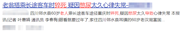 经医生分析指出,患者搭载长途车憋尿时间过长,在排尿后诱发迷走神经亢奋,心律失常导致猝死,这可能是酿成悲剧的一大因素。