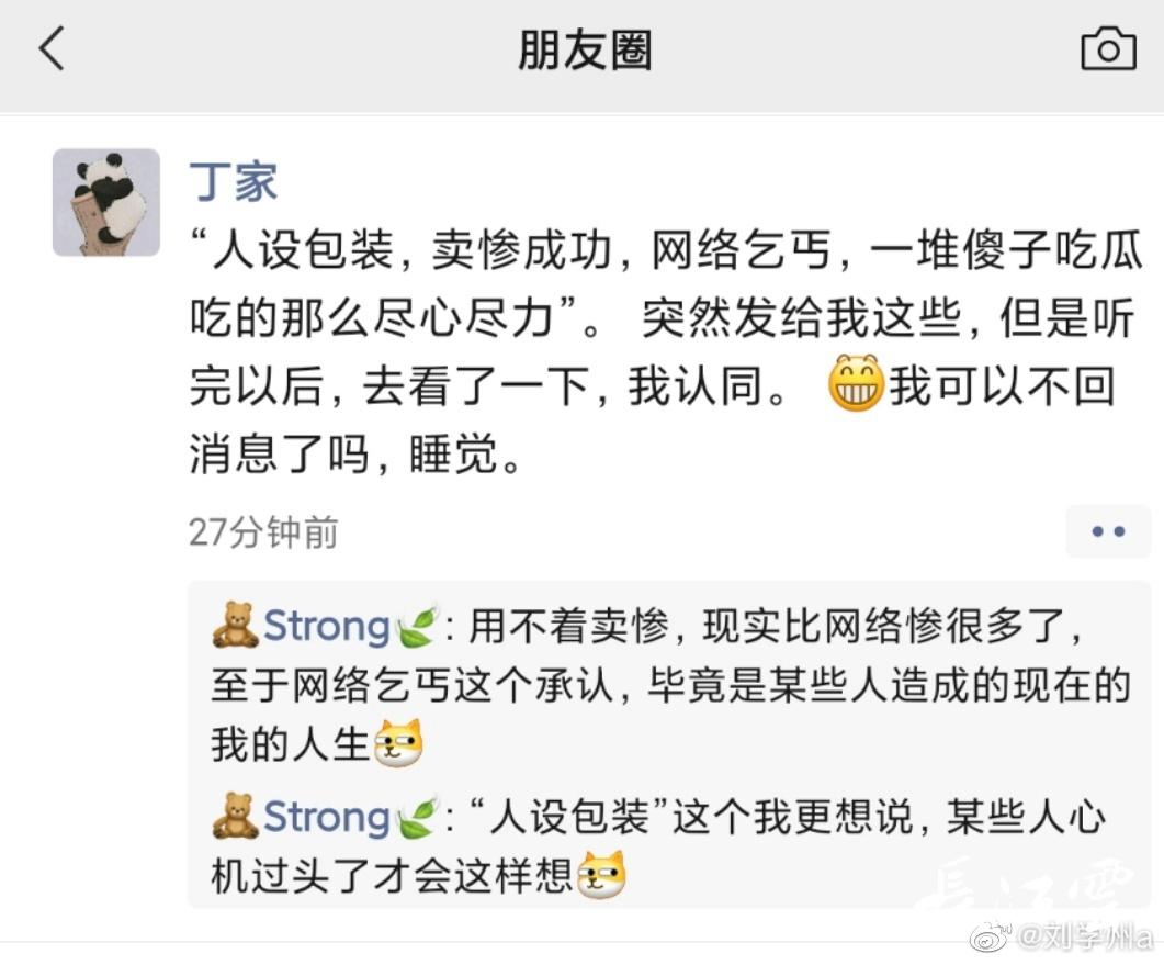 1月17日,刘学州称目前已被亲生母亲拉黑,还被其称为“白眼狼”。他在某平台直播时称,争执的起因是自己一直居无定所,希望生父母能给自己一个住处,但亲生父母听后反应激烈。说了一些狠话后,被生母微信“拉黑”,再遭“遗弃”。